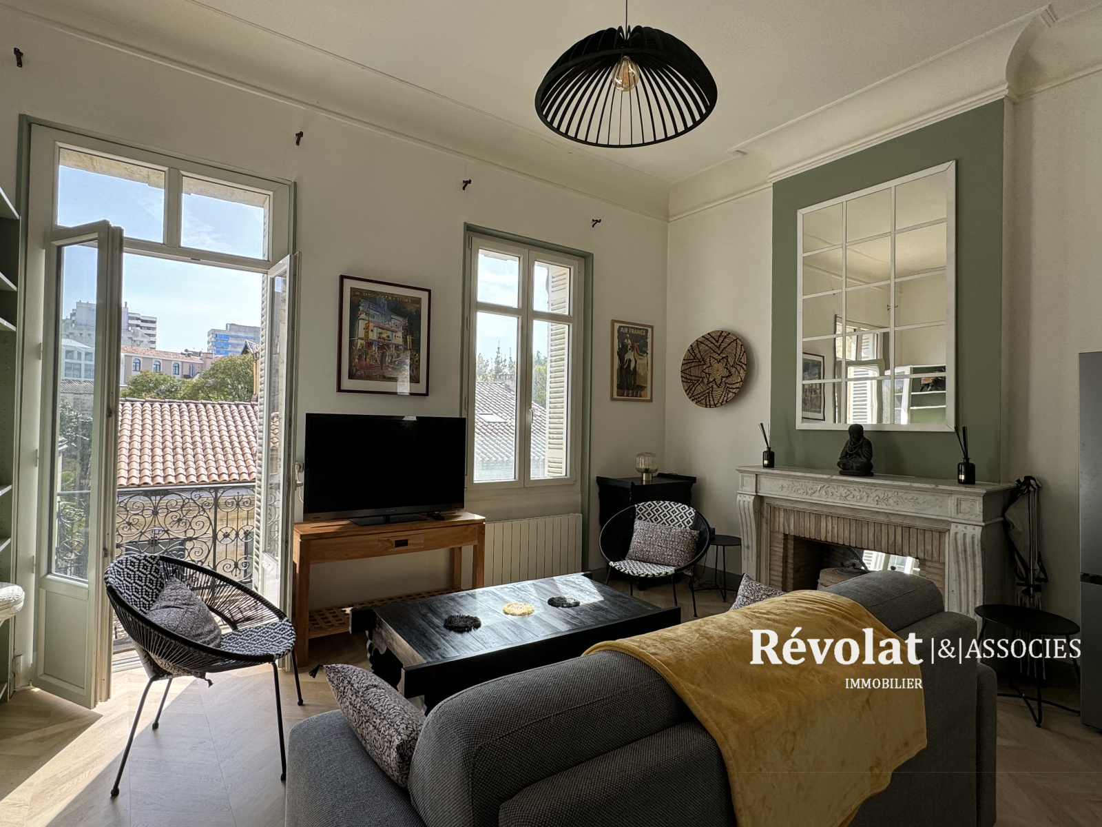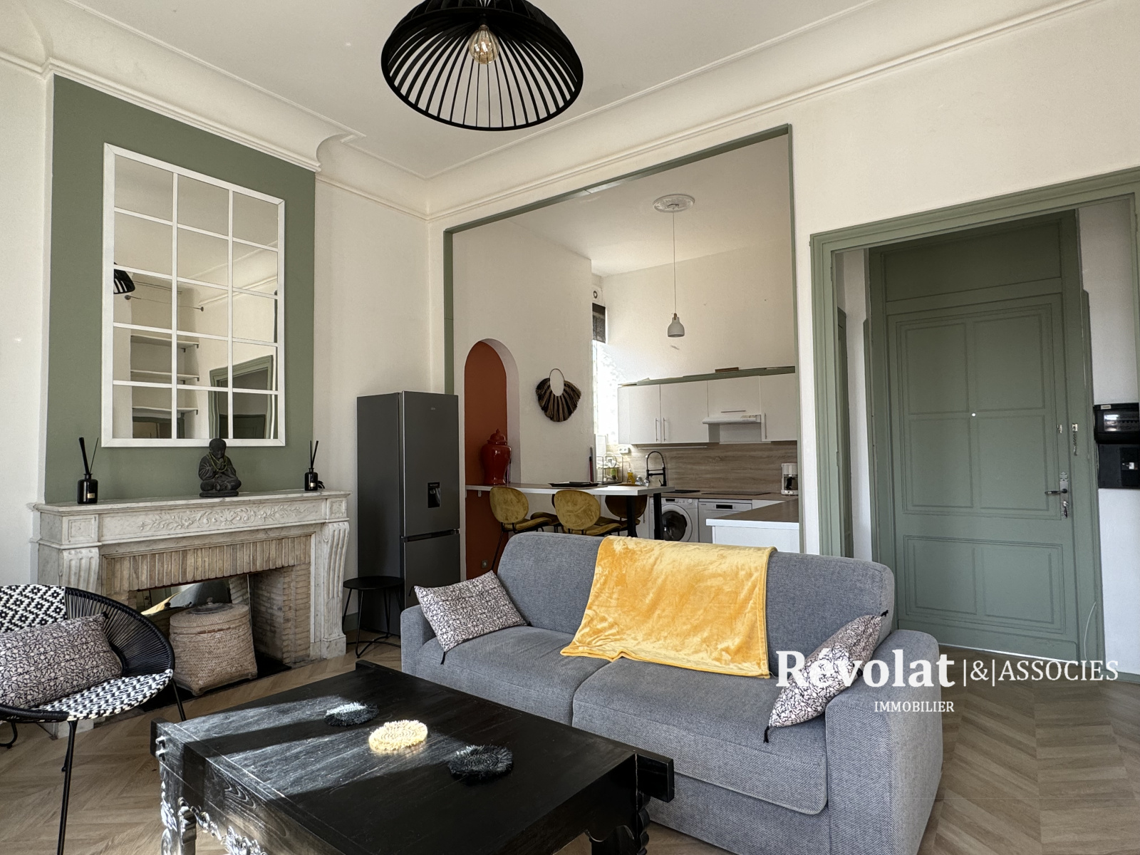 Dans très bel immeuble pierre, appartement entièrement rénové au 1er étage plein Sud avec balcon, entrée, grand salon avec cheminée, cuisine ouverte toute équipée, chambre, salle de bain, toilette indépendant. beaucoup de charme pour cet appartement Idéalement situé et très lumineux.
