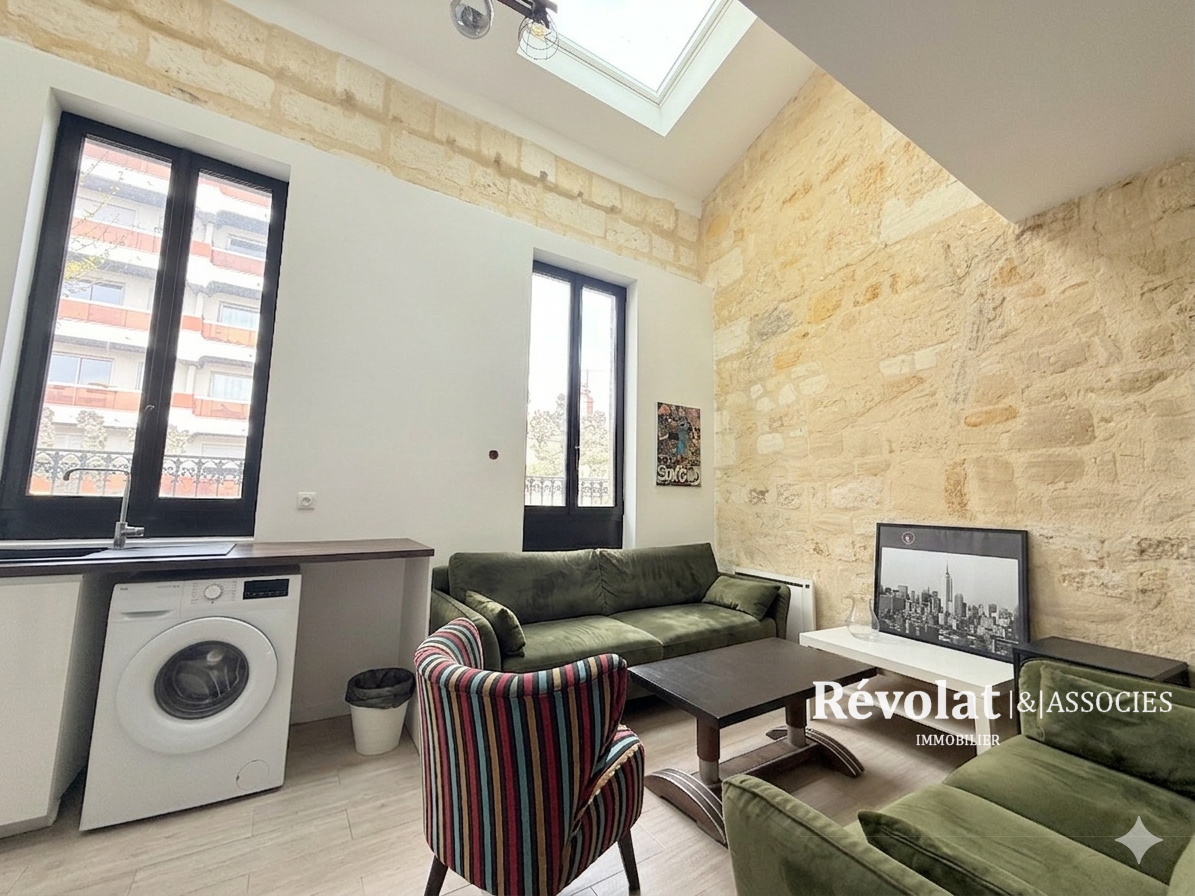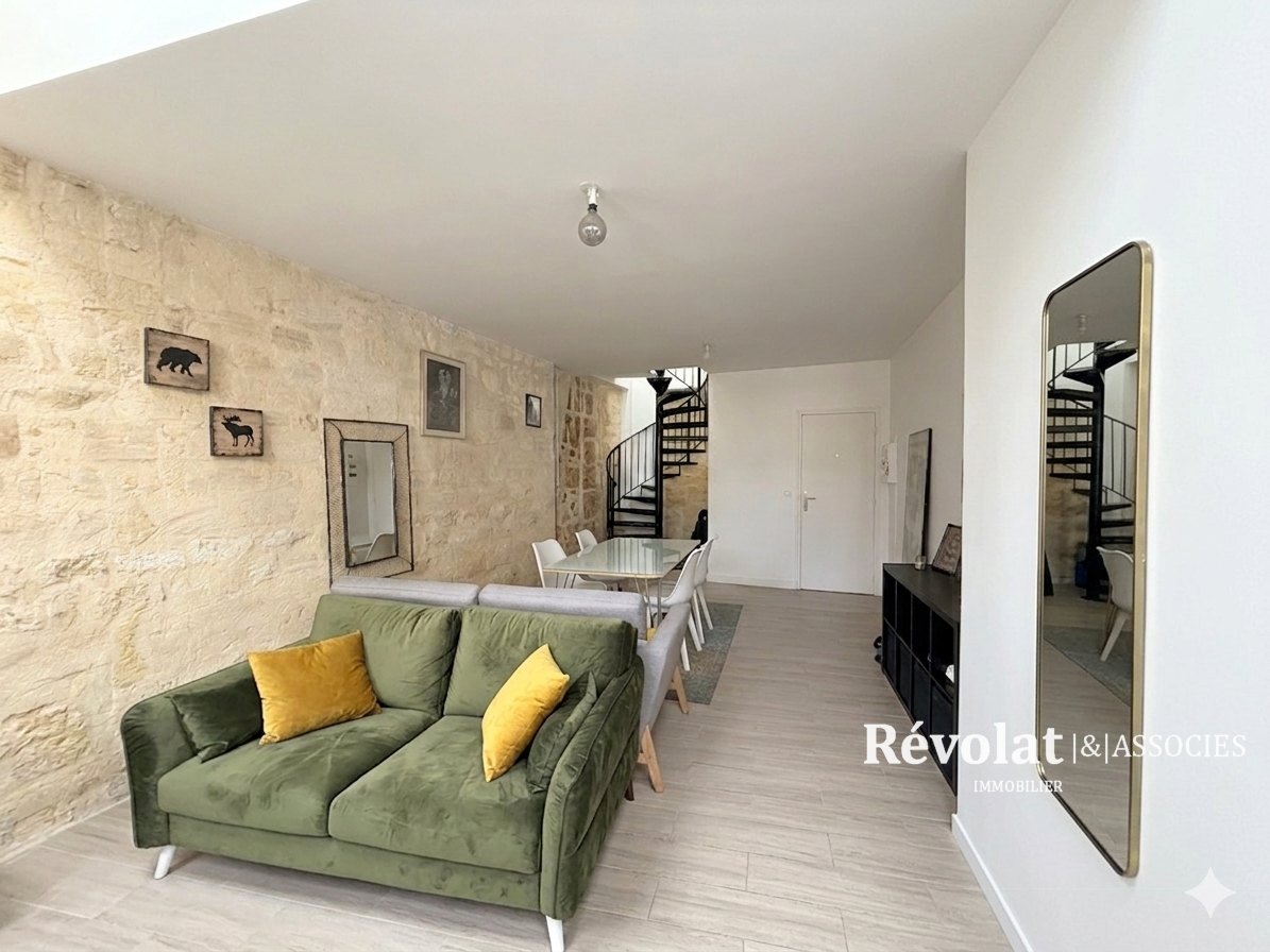Dans le quartier Judaïque, à deux pas du quartier Saint-Seurin, dans un petit immeuble pierre avec entrée privative, appartement en duplex rénové en 2019, très lumineux, aux volumes généreux composé sur son premier niveau d'une grande pièce de vie avec cuisine ouverte sur séjour / salon, salle d'eau avec toilette. Sur son second niveau, l'espace nuit distribue une suite parentale avec salle d'eau et toilette privatif et une deuxième chambre.