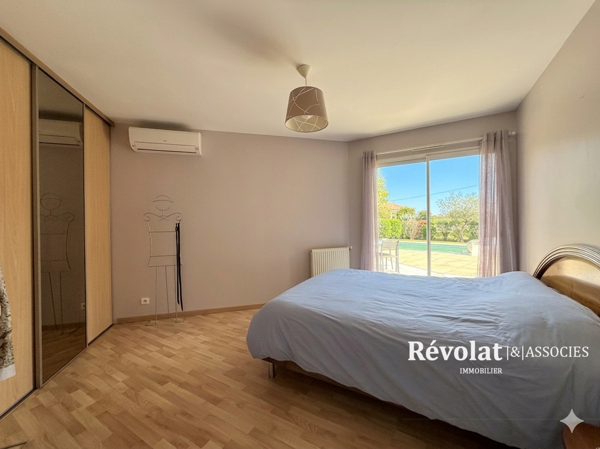 Dans un cadre bucolique, à 4 mn du centre de Carignan-de-Bordeaux et à 25 minutes en voiture du centre de Bordeaux, maison de plain-pied construite en 2005 sur un terrain de 2500 mètres carrés avec piscine, grande terrasse exposée Sud-Est, garage fermé et places de stationnement extérieures. Elle est composée d'un vaste séjour climatisé d'environ 60 mètres carrés avec cheminée fonctionnelle et cuisine ouverte, buanderie, quatre chambres, une salle de bain complète, un toilette indépendant. Situé dans une rue à sens unique, au calme avec un immense jardin, cette maison de qualité saura vous séduire grâce à son environnement exceptionnel. Un coin de paradis pour des belles journées estivales, à visiter sans tarder !!