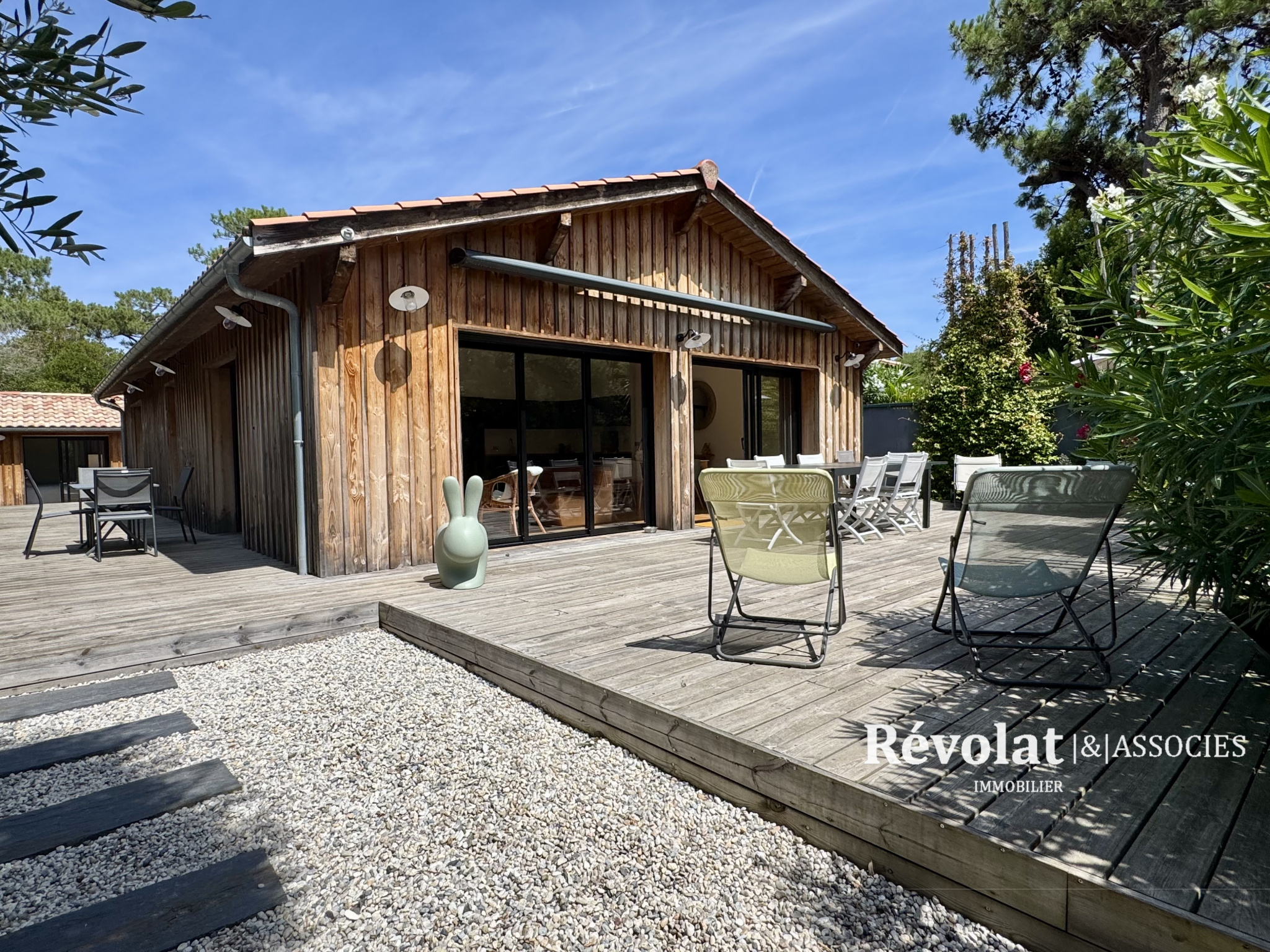 En plein cœur du Cap-Ferret, à 5 minutes de la place du marché, maison en seconde ligne non mitoyenne et climatisée entièrement réhabilitée en 2019. A l'abri des regards et parfaitement au calme cette superbe maison de plain-pied comprend deux corps de bâtiments. Dans la maison principale, entrée avec vestiaire, vaste séjour / salle à manger avec cuisine ouverte équipée ouvrant sur une immense terrasse, deux chambres avec placards aménagés et chacune sa salle d'eau, toilette indépendant. Dans le deuxième corps de bâtiment, entrée, deux chambres avec chacune sa salle d'eau et son toilette, buanderie. Cellier de 15 m2. Terrain de pétanque. Possibilité de rentrer quatre voitures. Génial !